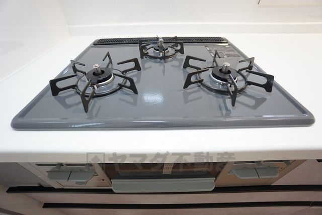 3種類の料理が同時に調理できる、3口ガスコンロ。忙しい夕食の支度時間が短縮できて効率よくお料理が楽しめます。