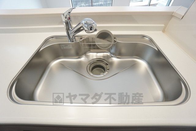 大きなお鍋も楽々洗える幅の広いシンクです^^ステンレスシンクなので簡単にお掃除できますよ。洗剤やスポンジもすっきりできる収納付き。