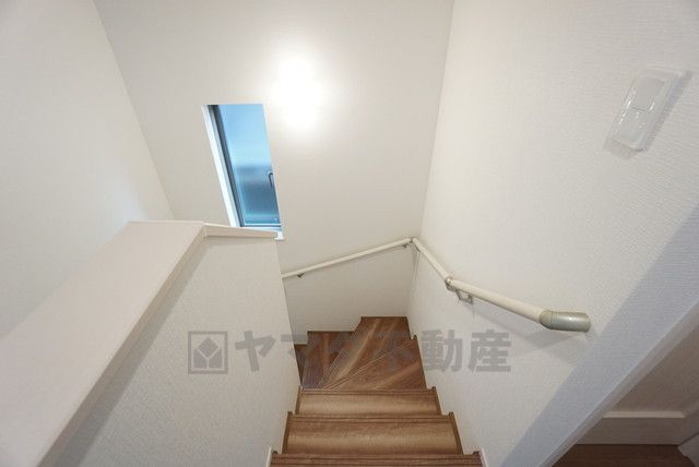 日中でも暗くなりがちな階段には、小窓を配置し採光も考えられたつくり^^手摺付きなので安全に上り下りできますね^^