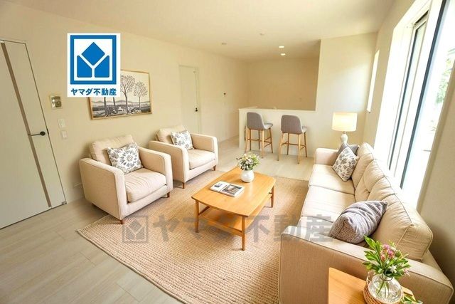 大きな掃き出し窓のあるリビングは、陽光あふれる明るい空間です。ゆったりと寛げる憩いの場となりそうです。