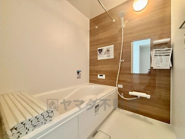 1日の疲れを癒すくつろぎのバスルーム。足を伸ばしてもゆったりと入れるサイズです。お子様と一緒にお風呂に入っても狭くないですね^^