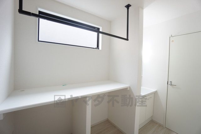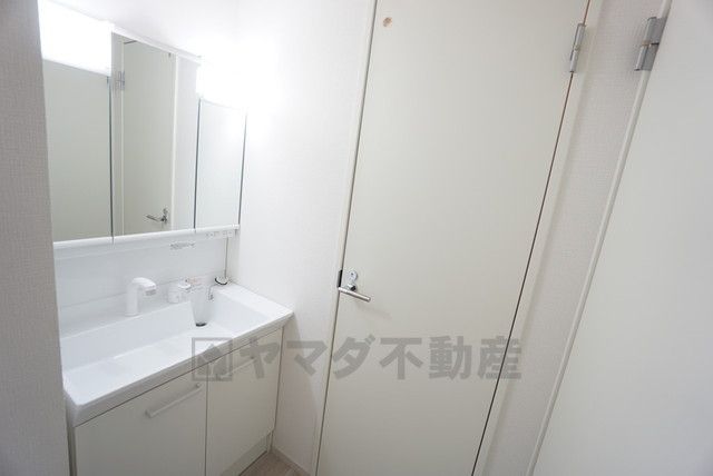 洗面台、洗濯機置き場、バスルームが連なっている、生活導線の考えられた作りになっています。