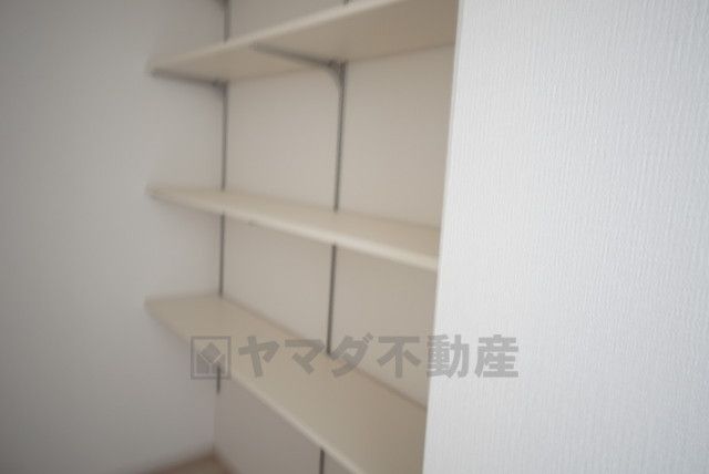 キッチンに設けられたパントリー。備蓄品や大きなお皿、使用頻度の少ない調理器具などの収納に便利です。