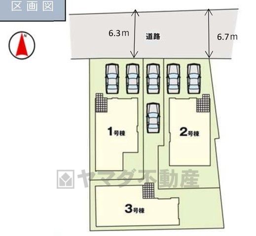 北側公道:約6.3m~6.7m