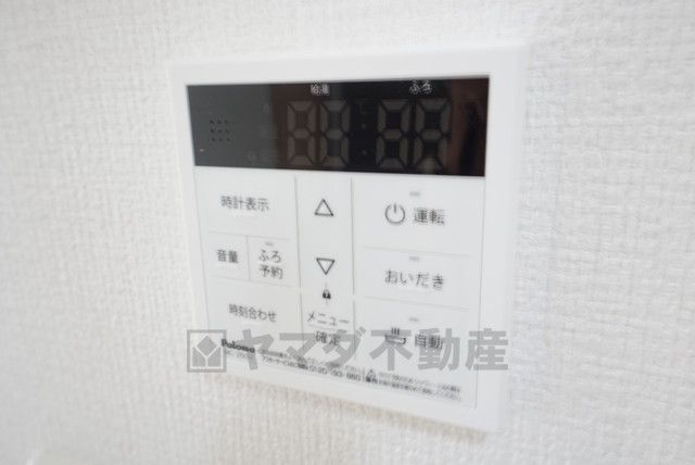 キッチン横からお湯張り、追い炊き、足し湯がボタン一つで楽々操作できる給湯機リモコンです^^忙しい夕飯の準備の時間帯に重宝しますね。