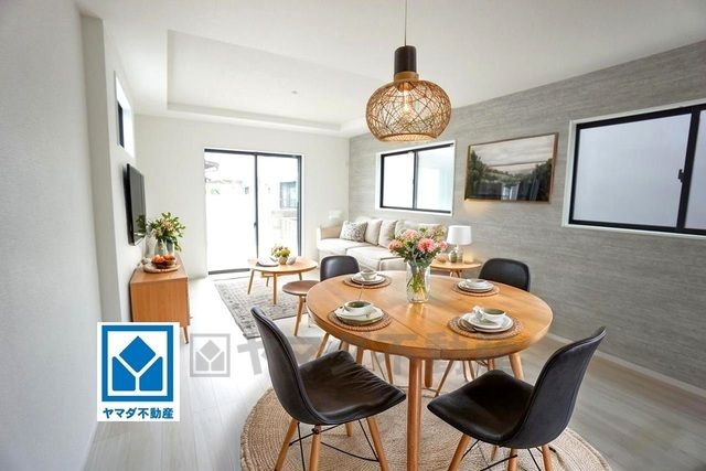 ▲1階は17.9帖のLDK^^折り上げ天井で開放感のある空間^^ 2階には3洋室、うち約10帖の洋室を2部屋に分けて4LDK対応可^^