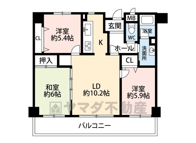 LDK10.2畳、和6畳、洋5.9畳、洋5.4畳 |