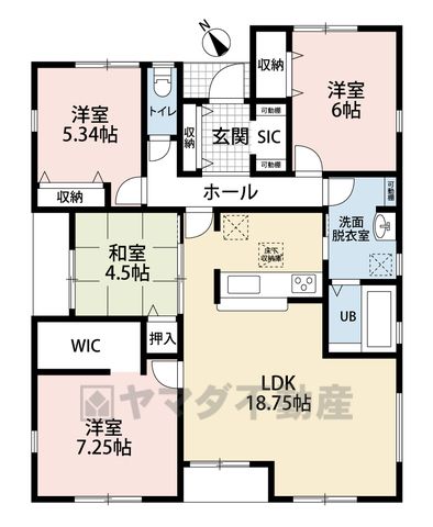 LDK18.7畳(1F)、和4.5畳(1F)、洋7.2畳(1F)、洋6畳(1F)、洋5.3畳(1F) |