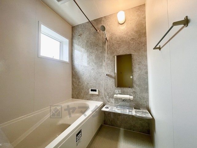 1日の疲れを癒すくつろぎのバスルーム。足を伸ばしてもゆったりと入れるサイズです。お子様と一緒にお風呂に入っても狭くないですね^^