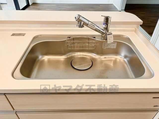 大きなお鍋も楽々洗える幅の広いシンクです^^ステンレスシンクなので簡単にお掃除できますよ。洗剤やスポンジもすっきりできる収納付き。