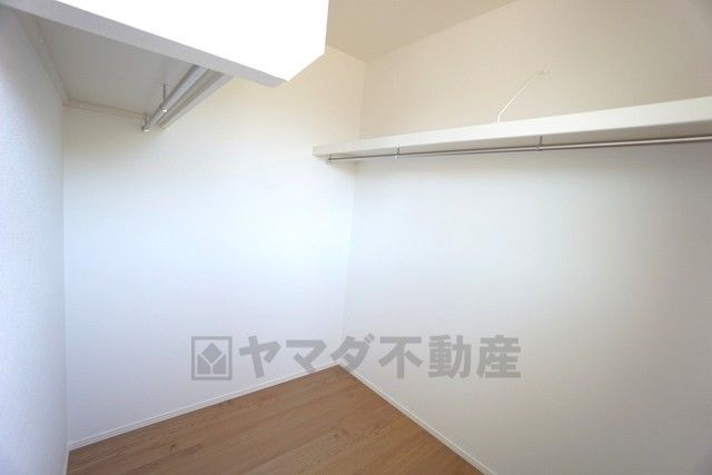 ウォークインクローゼット付き^^ハンガーパイプ下にボックスを置いて、枕棚を活用して、たっぷりと収納できそうです^^