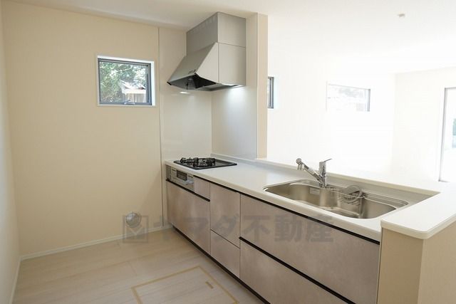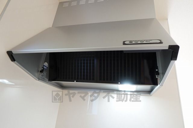 コンロ上には換気扇完備^^すぐ横に小窓が設けられているので、換気扇と合わせてWで換気できます^^
