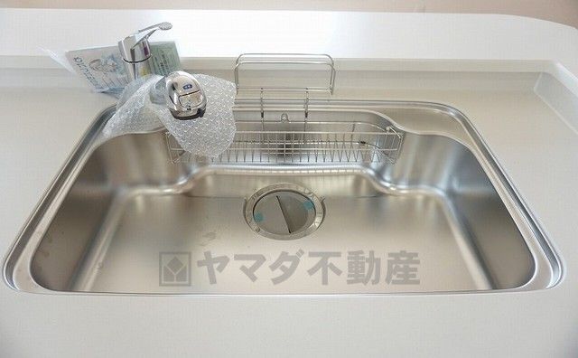 大きなお鍋も楽々洗える幅の広いシンクです^^ステンレスシンクなので簡単にお掃除できますよ。洗剤やスポンジもすっきりできる収納付き。