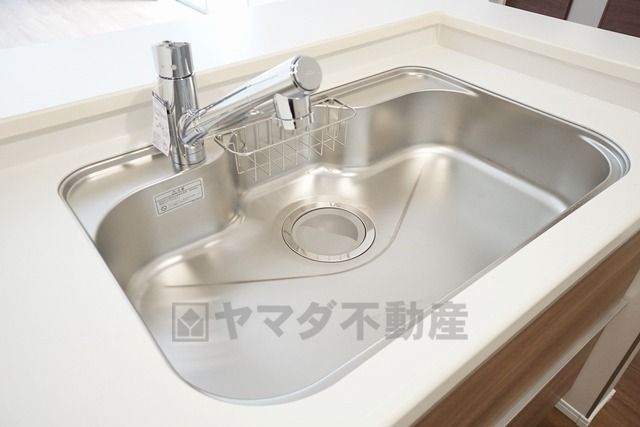 大きなお鍋も楽々洗える幅の広いシンクです^^ステンレスシンクなので簡単にお掃除できますよ。洗剤やスポンジもすっきりできる収納付き。