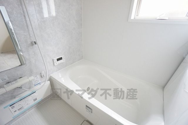 1日の疲れを癒すくつろぎのバスルーム。足を伸ばしてもゆったりと入れるサイズです。お子様と一緒にお風呂に入っても狭くないですね^^