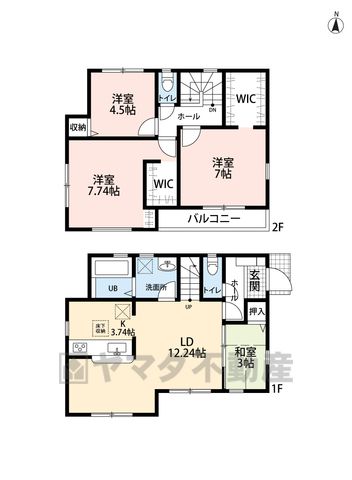 LDK15.9畳(1F)、和3畳(1F)、洋7.7畳(2F)、洋7畳(2F)、洋4.5畳(2F) |