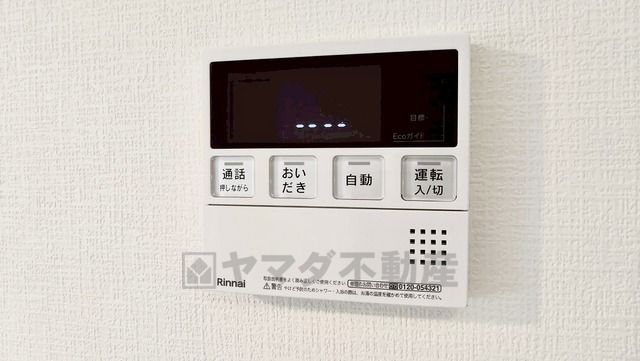 キッチン横からお湯張り、追い炊き、足し湯がボタン一つで楽々操作できる給湯機リモコンです^^忙しい夕飯の準備の時間帯に重宝しますね。