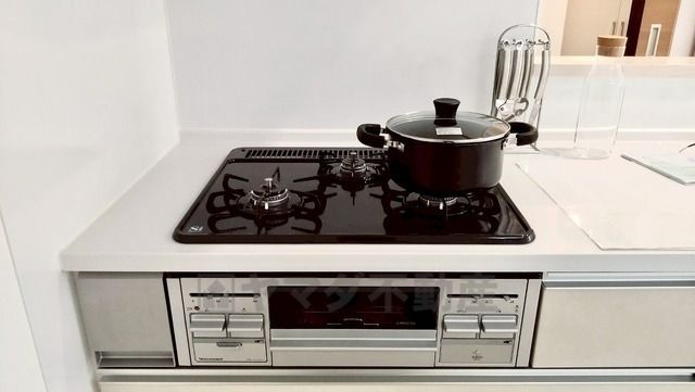 3種類の料理が同時に調理できる、3口ガスコンロ。忙しい夕食の支度時間が短縮できて効率よくお料理が楽しめます。