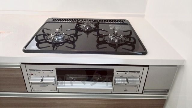 3種類の料理が同時に調理できる、3口ガスコンロ。忙しい夕食の支度時間が短縮できて効率よくお料理が楽しめます。