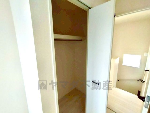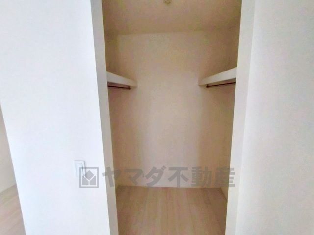 ウォークインクローゼット付き^^ハンガーパイプ下にボックスを置いて、枕棚を活用して、たっぷりと収納できそうです^^