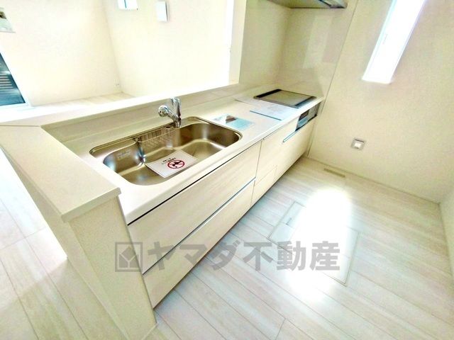収納も、作業スペースも広々と設けられた使いやすいシステムキッチンです^^カウンターキッチンなので、ご家族と会話をしながら楽しくお料理ができます^^
