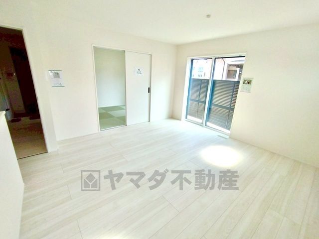 大きな掃き出し窓のあるリビングは、陽光あふれる明るい空間です。ゆったりと寛げる憩いの場となりそうです。