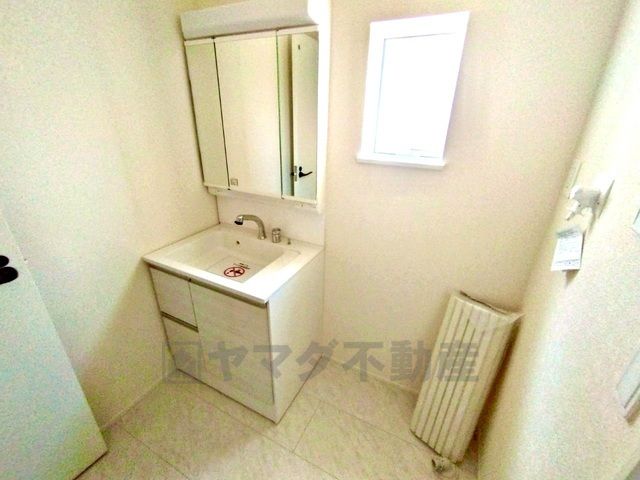 洗面台、洗濯機置き場、バスルームが連なっている、生活導線の考えられた作りになっています。