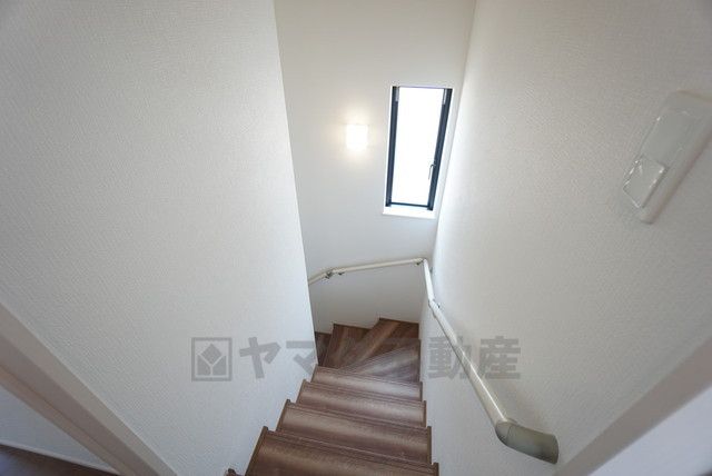 日中でも暗くなりがちな階段には、小窓を配置し採光も考えられたつくり^^手摺付きなので安全に上り下りできますね^^