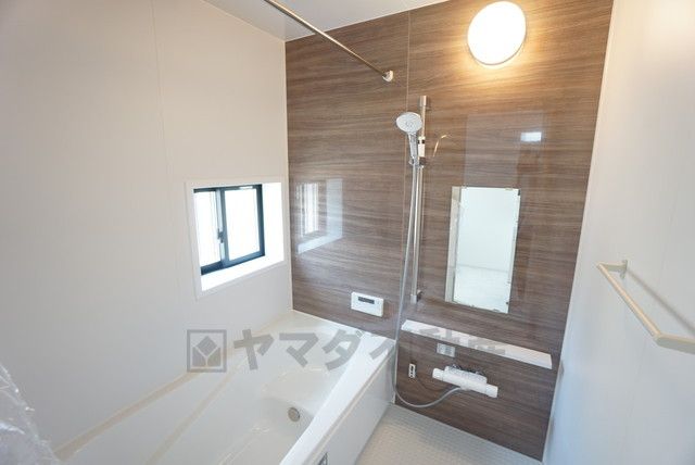 1日の疲れを癒すくつろぎのバスルーム。足を伸ばしてもゆったりと入れるサイズです。お子様と一緒にお風呂に入っても狭くないですね^^