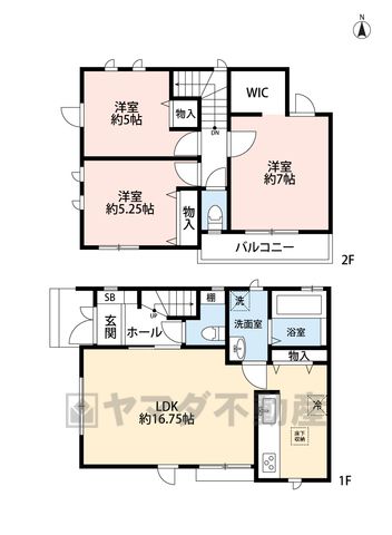 LDK16.7畳(1F)、洋7畳(2F)、洋5.2畳(2F)、洋5畳(2F) |