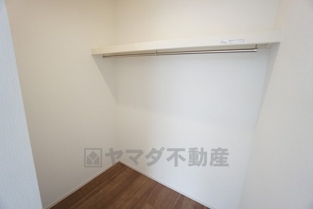 ウォークインクローゼット付き^^ハンガーパイプ下にボックスを置いて、枕棚を活用して、たっぷりと収納できそうです^^