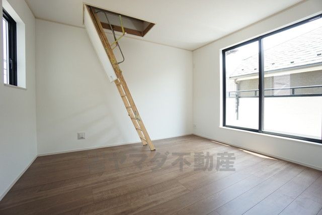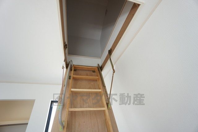 小屋裏収納付き。季節物の衣類や家電などの収納にも困りませんね^^梯子は2階居室の上部から引き出しできます。