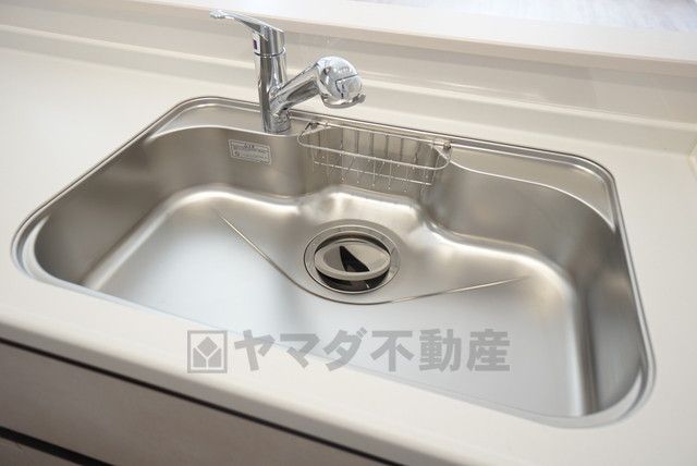 大きなお鍋も楽々洗える幅の広いシンクです^^ステンレスシンクなので簡単にお掃除できますよ。洗剤やスポンジもすっきりできる収納付き。