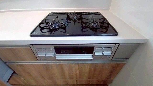 3種類の料理が同時に調理できる、3口ガスコンロ。忙しい夕食の支度時間が短縮できて効率よくお料理が楽しめます。