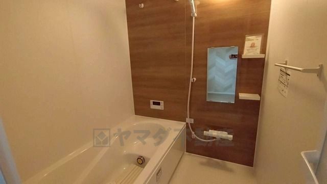 1日の疲れを癒すくつろぎのバスルーム。足を伸ばしてもゆったりと入れるサイズです。お子様と一緒にお風呂に入っても狭くないですね^^
