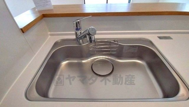 大きなお鍋も楽々洗える幅の広いシンクです^^ステンレスシンクなので簡単にお掃除できますよ。洗剤やスポンジもすっきりできる収納付き。