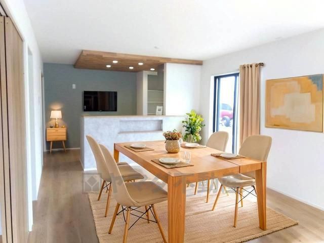 キッチンから会話が弾みそうなダイニングです。お友達や親せきをお招きするのも楽しみになりますね^^