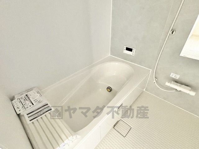 1日の疲れを癒すくつろぎのバスルーム。足を伸ばしてもゆったりと入れるサイズです。お子様と一緒にお風呂に入っても狭くないですね^^