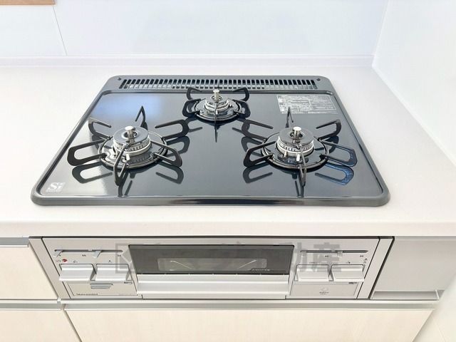 3種類の料理が同時に調理できる、3口ガスコンロ。忙しい夕食の支度時間が短縮できて効率よくお料理が楽しめます。