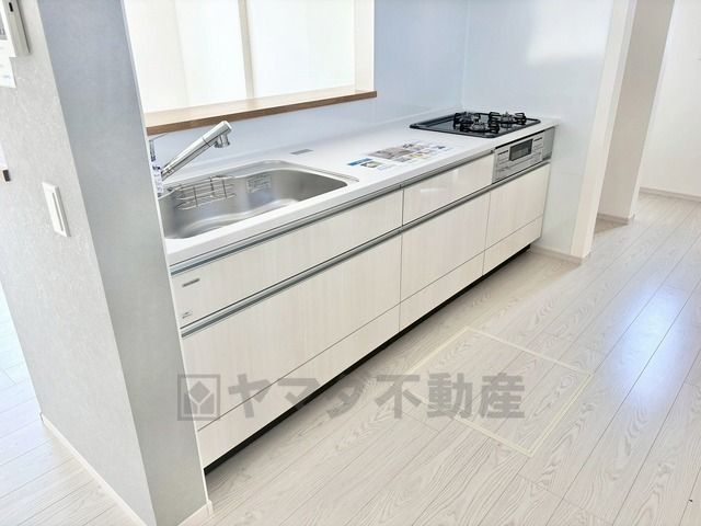 作業台が広く、お料理の効率があがります。対面キッチンなのでお料理をしながら家族との会話も楽しめます。