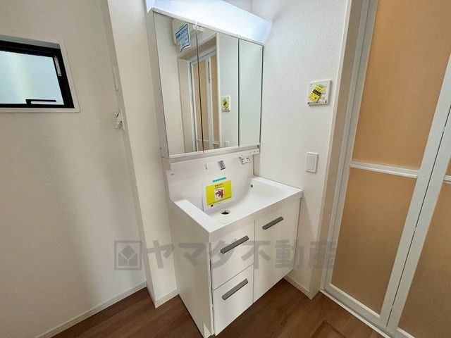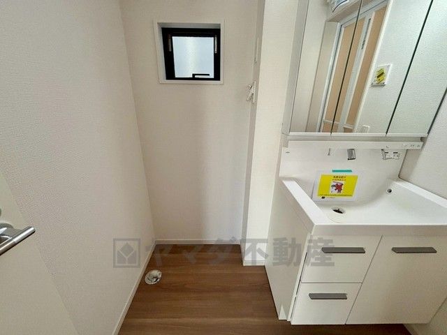 洗面台、洗濯機置き場、バスルームが連なっている、生活導線の考えられた作りになっています。