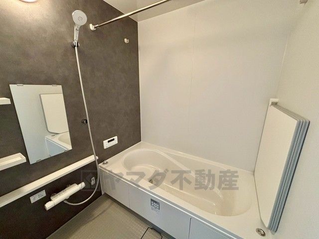 1日の疲れを癒すくつろぎのバスルーム。足を伸ばしてもゆったりと入れるサイズです。お子様と一緒にお風呂に入っても狭くないですね^^