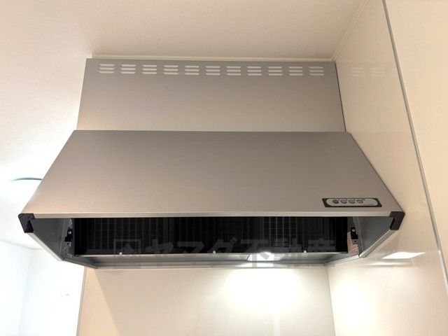 コンロ上には換気扇完備^^すぐ横に小窓が設けられているので、換気扇と合わせてWで換気できます^^