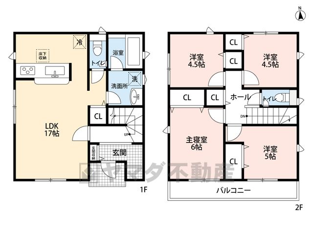 LDK17畳(1F)、洋6畳(2F)、洋5畳(2F)、洋4.5畳(2F) |