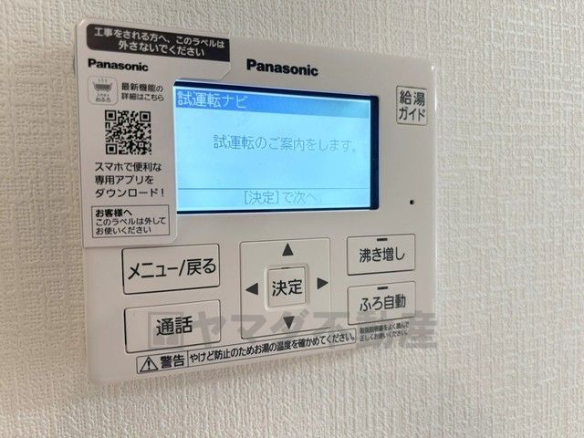 キッチン横からお湯張り、追い炊き、足し湯がボタン一つで楽々操作できる給湯機リモコンです^^忙しい夕飯の準備の時間帯に重宝しますね。