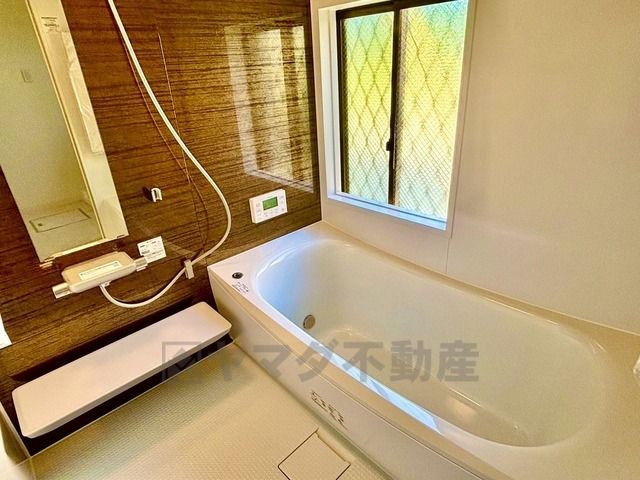 1日の疲れを癒すくつろぎのバスルーム。足を伸ばしてもゆったりと入れるサイズです。お子様と一緒にお風呂に入っても狭くないですね^^