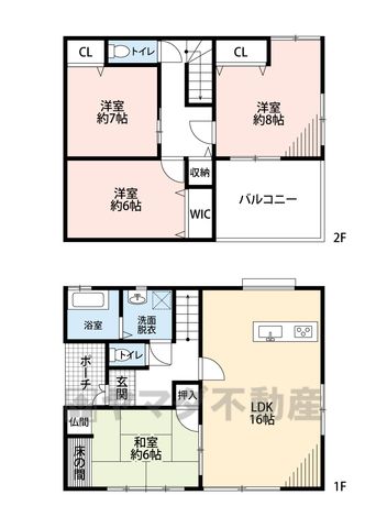 LDK16畳(1F)、和6畳(1F)、洋8畳(2F)、洋7畳(2F)、洋6畳(2F) |