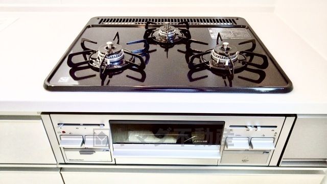 3種類の料理が同時に調理できる、3口ガスコンロ。忙しい夕食の支度時間が短縮できて効率よくお料理が楽しめます。