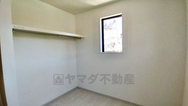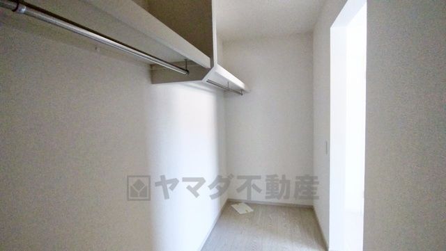 ウォークインクローゼット付き^^ハンガーパイプ下にボックスを置いて、枕棚を活用して、たっぷりと収納できそうです^^