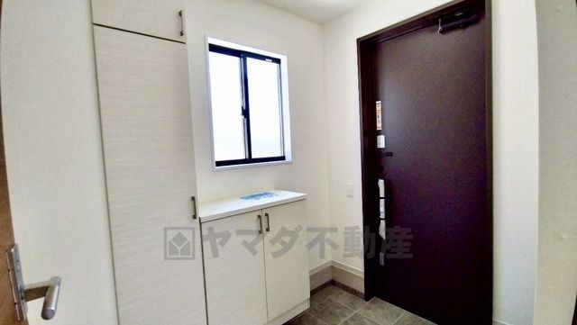 採光も考えられた明るい玄関です。たっぷり収納できるシューズボックス付きなので、家族全員の靴がきれいに整頓できます。